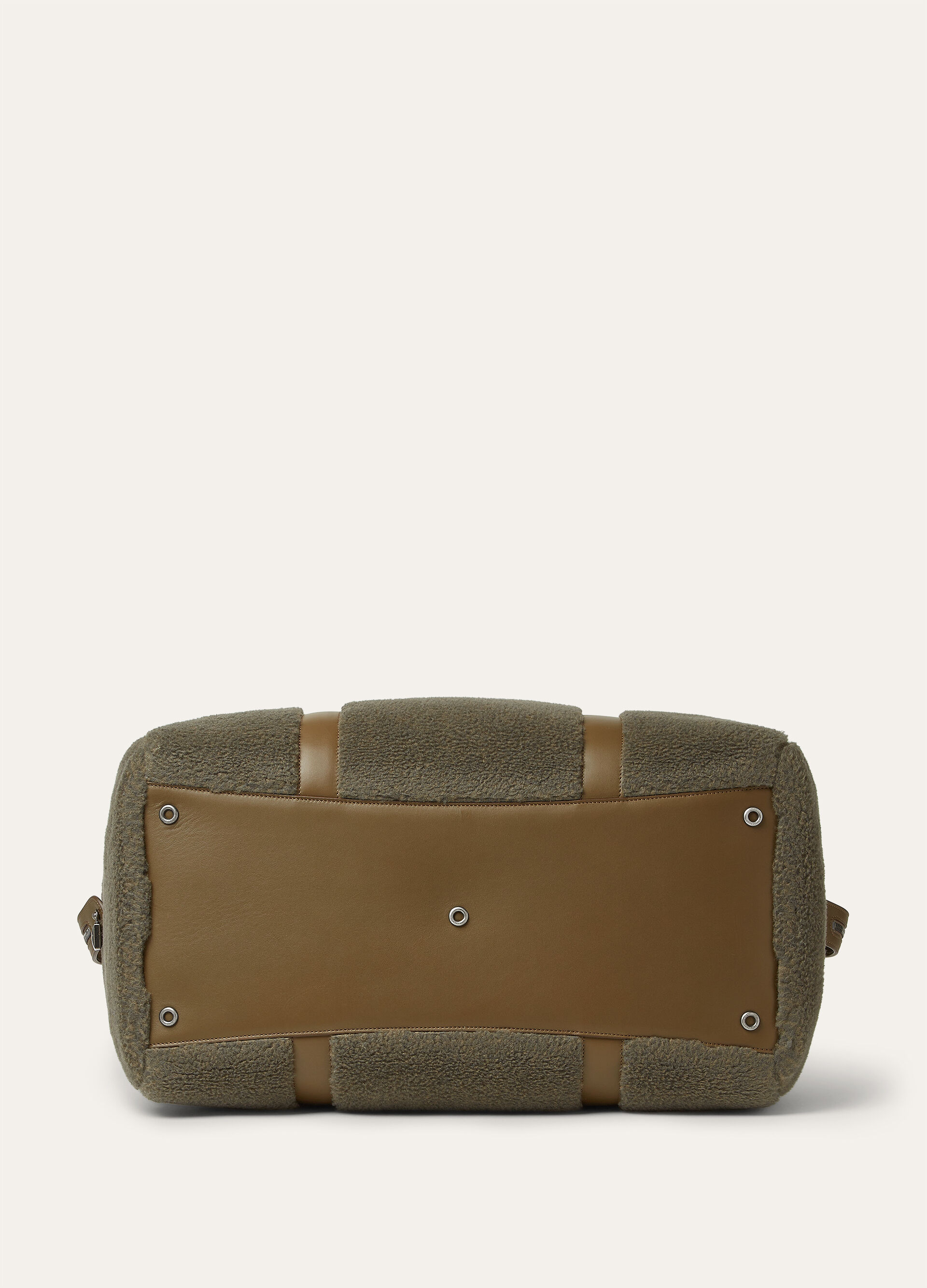 The Loom Weekender bag pays homage to Loro Piana's centuries-old textile heritage, with the metal bar beneath the flap evoking the gentle cascade of fabric draped across an artisan's loom - a subtle nod to the brand's storied weaving techniques. Uniquely textured yet lightweight in a beautiful blend of cashmere and silk, the refined padlock that closes the bag can be unfastened, giving it a more relaxed look. Loom can be worn closed or open without losing charm and personality. Even when worn unfolded, the bag gracefully closes by itself. The perfect bag for a weekend getaway.